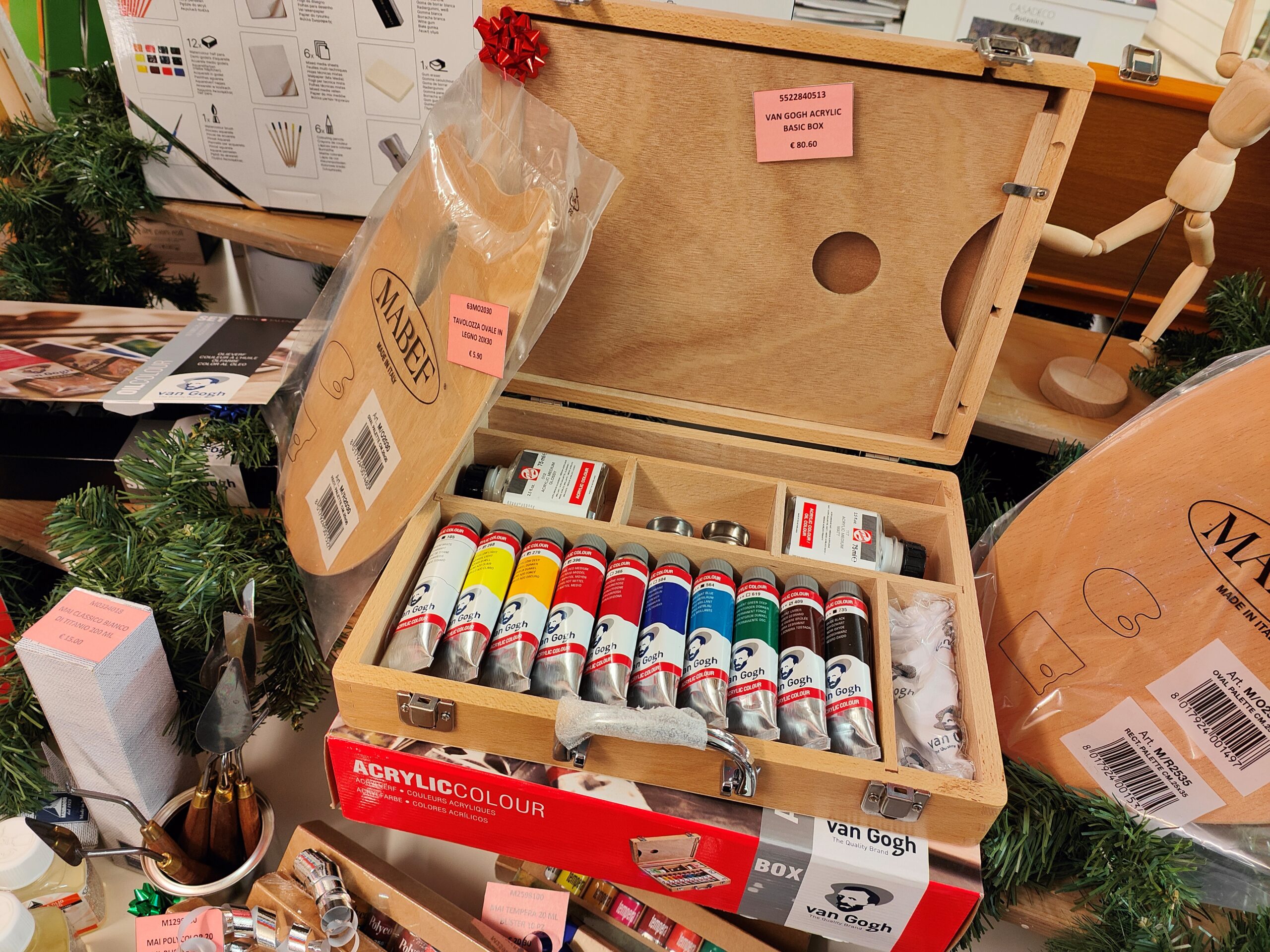 Nel nostro negozio troverete anche una vasta gamma di prodotti ausiliari da abbinare ai colori, per un regalo completo e perfetto! Tele da dipingere, cartoncini telati, album per acquarello, pennelli, tavolozze porta colori, bambo porta pennelli, bombolette oro e argento, pennarelli colorati por i vostri lavori di natale, e soprattutto cavalletti, adatti ad ogni vostra esigenza, da quelli a lyra, a quelli da studio fino ad arrivare a quelli da tavolo.